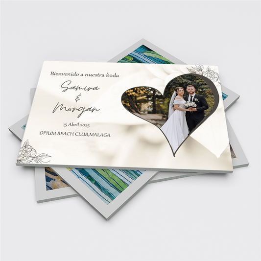carteles de bienvenidas de cartón pluma para bodas con fotos corazón